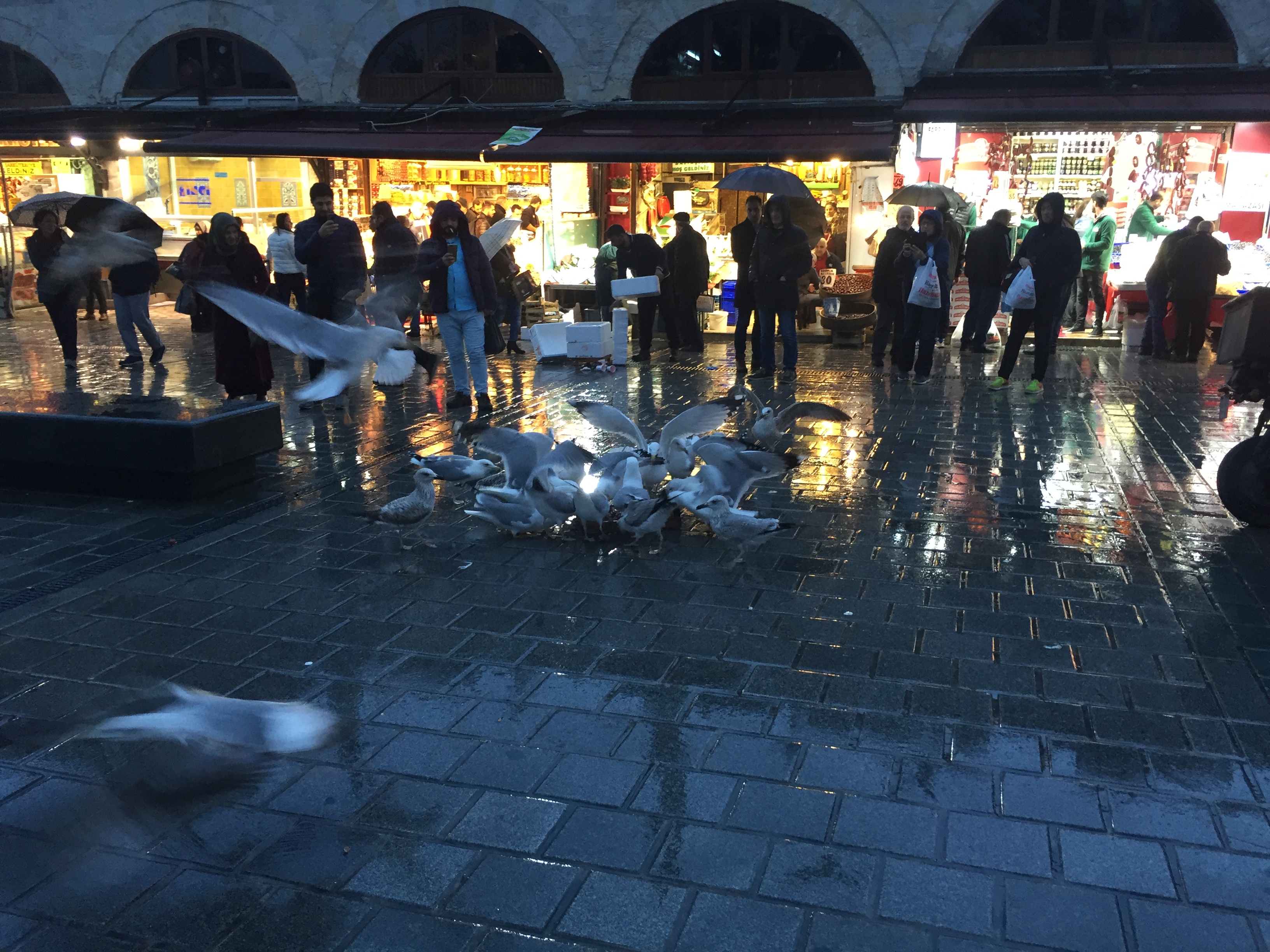 다시 에미뇌뉘 쪽으로 돌아가서, 잠시 카페에 들어갔다. 라떼와 함께 모자이크라는 이름의 케익을 주문했는데, 이 모자이크라는 이름은 케익 사이에 박혀있는 견과류 (아마 피스타치오) 덕에 붙은 이름인 듯. 진한 초콜릿을 먹었더니 빗속에서 고생하면서 걸어다녔던 게 조금은 풀렸다. 바로 옆에는 이집션 바자르라는 전통시장이 있어서, 둘러보면서 하루를 마칠 수 있었다.