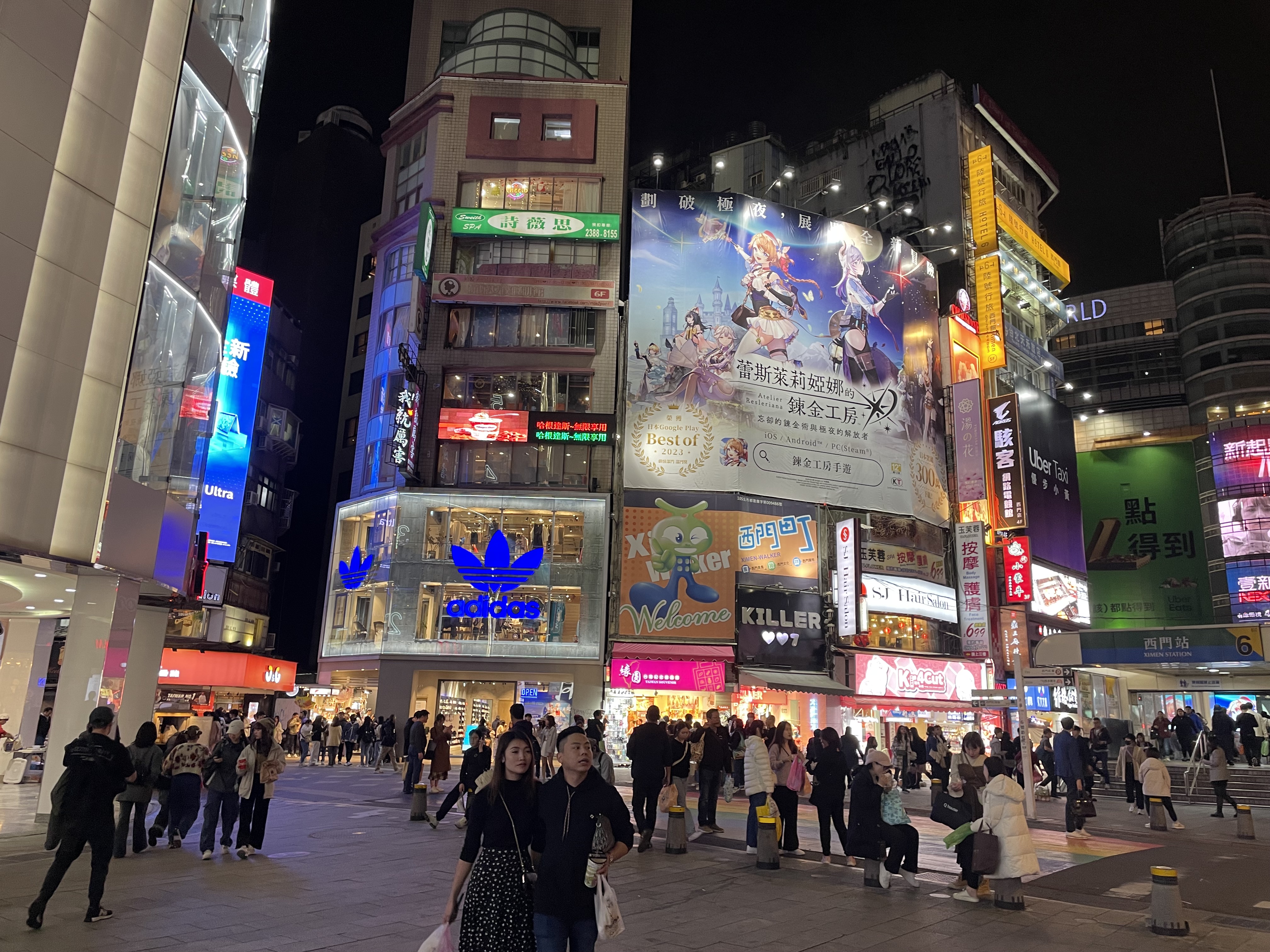 서울의 명동과 유사한 분위기의 시먼딩. 외국인 관광객들보다 현지인들이 더 많이 찾는 곳이라는 건 명동과는 좀 다른 듯? 길 옆으로 무려 메이플스토리(!) 광고가 설치되어 있었다.