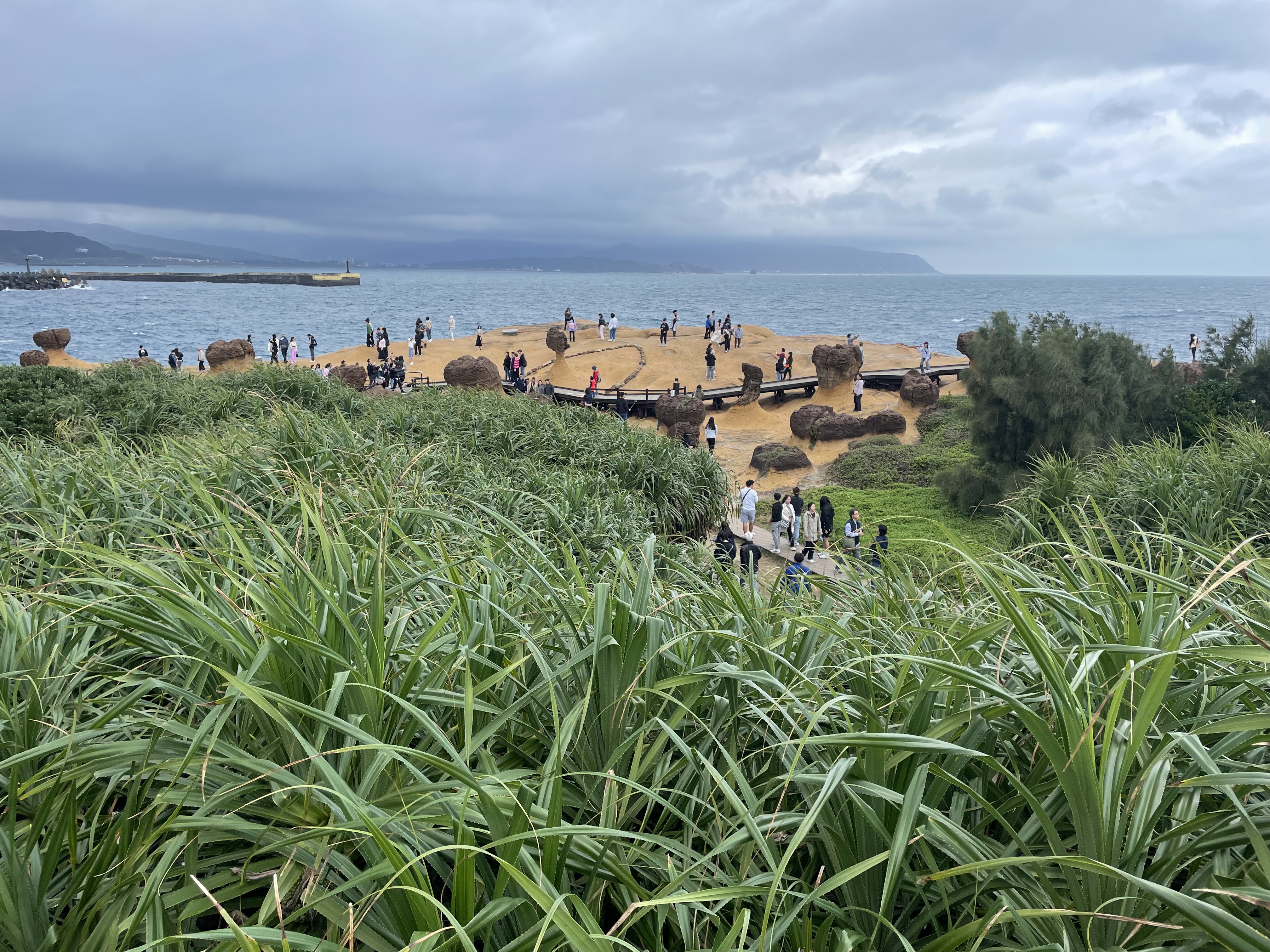 버섯 모양 바위들은 예류 지질공원의 상징과도 같다. 신기하게도 버섯바위가 듬성듬성 형성되어있는 형태가 아니라 사진에서 볼 수 있다시피 빼곡히 밀집되어 있다. 우리가 방문한 1월은 대만 여행 성수기. 정말 많은 사람들을 볼 수 있었다. 역시 한국인들도 많았고. 예전에는 관광지에서 흔한 관광객 중 한 명이 되는 것이 싫어서, 유명한 관광지들을 피하고 사람들이 많이 찾지 않는 곳 위주로 여행을 다니는 소위 홍대병에 걸렸었던 적이 있다. 요즘은 '남들 가는 유명한 곳들도 못 가고 았는데 관광지도 얼마 없는 곳으로 갈 필요가 있나?'라는 생각이 더 들지만.
