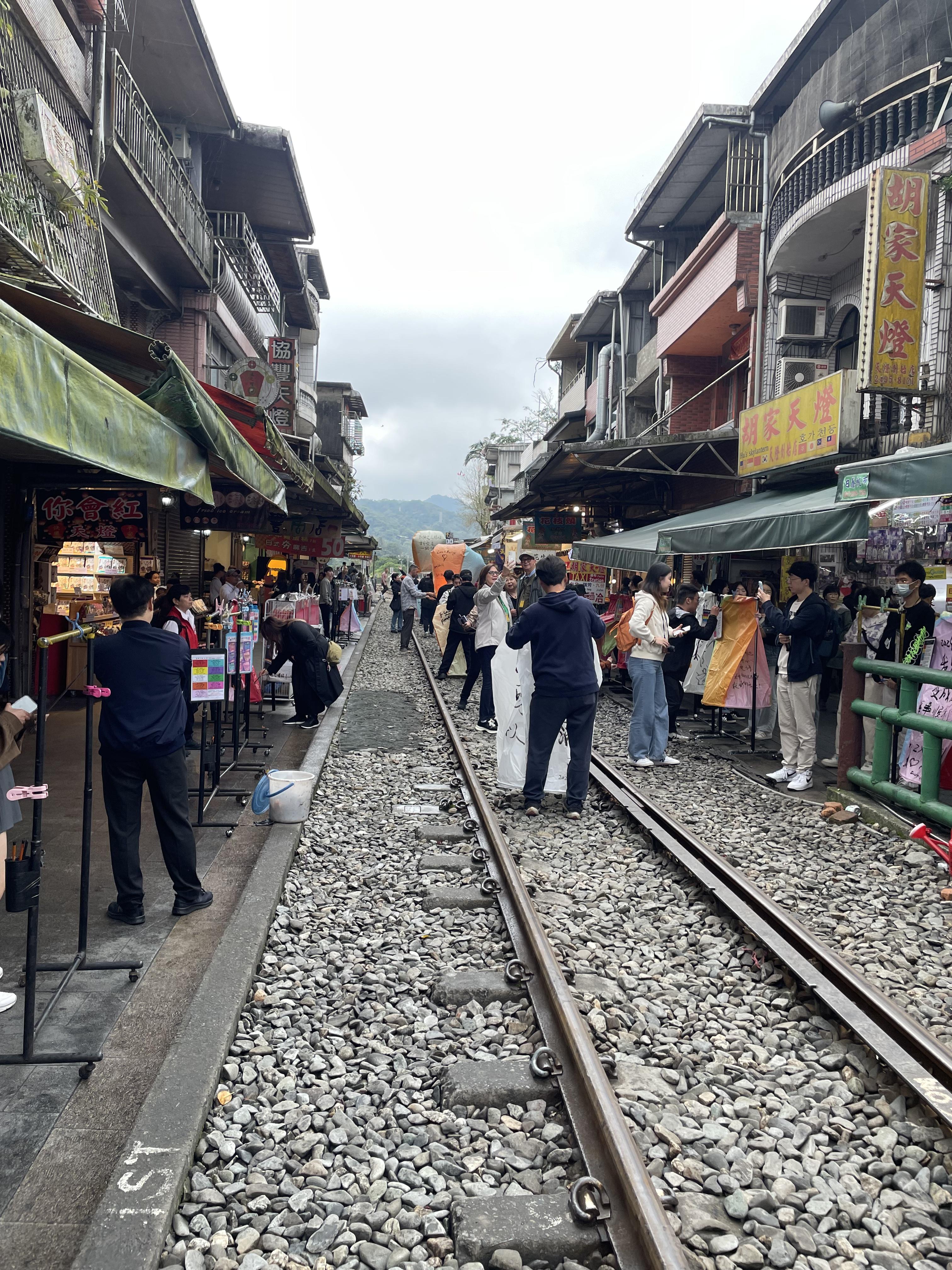 루이팡역에서 지룽 강을 거슬러 올라가며 스펀을 지나 징퉁역까지 운행하는 핑시선에는 지금도 시간이 맞으면 열차가 운행하는 모습을 볼 수 있다. 이 기찻길에서 천등을 날리는 것이 스펀의 매력. 특히 마을 한가운데로 기찻길이 지나는 것은 한국에서는 볼 수 없기 때문에, 이 낯섦이 대만 여행에 매력을 배가시킨다. 한국에도 마을 한가운데를 가로지르는 로컬 노선이 남아있었으면 어땠을까 하는 생각이 든다.