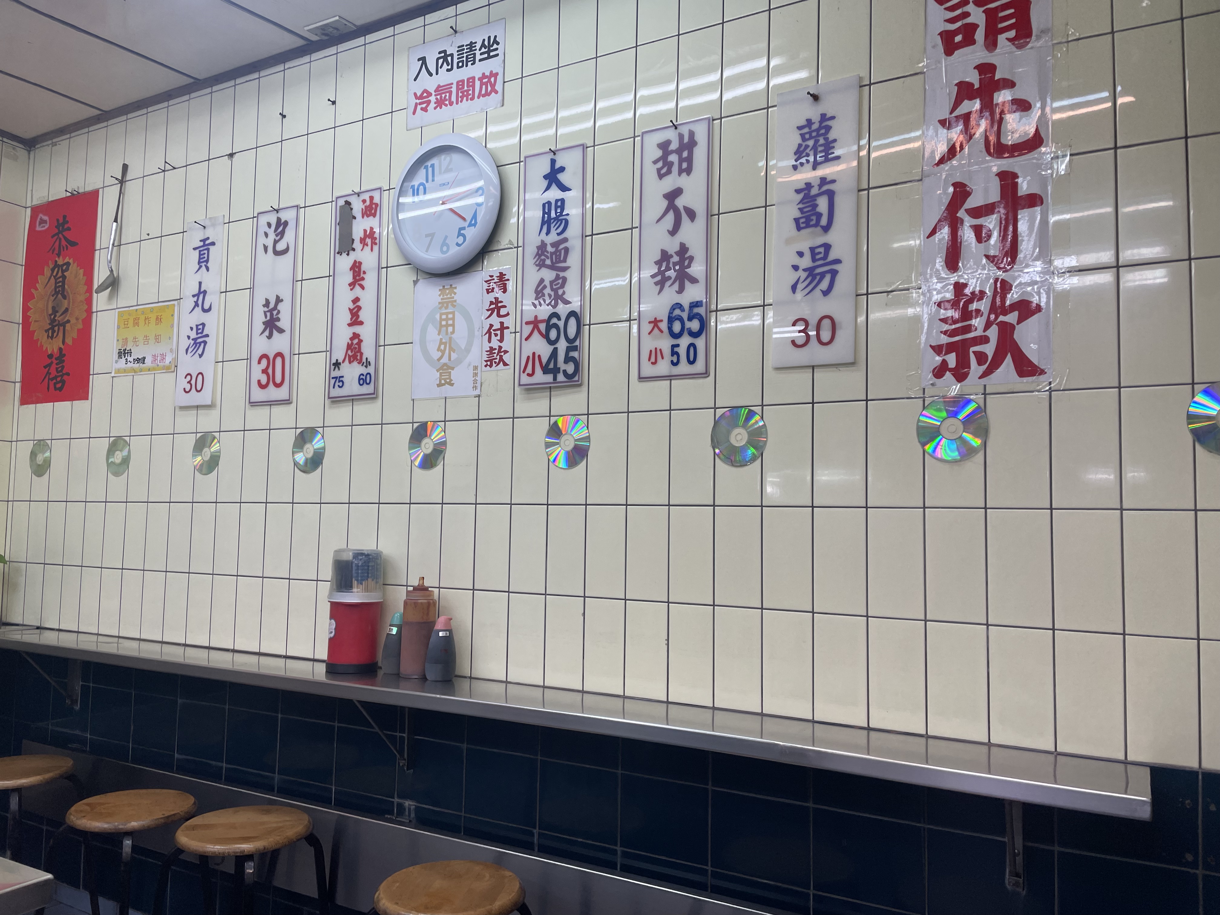 친구가 알려준 가게로 왔다. 특유의 꾸리꾸리한 냄새가 가게 앞에서 진동을 하고 있었다. 가게 앞에서 취두부를 포함해 간단하게 한 끼를 해결할 수 있는 음식들을 조리하고 있었고, 사람들은 음식을 포장해서 가거나 내부의 작은 공간에서 취식을 할 수 있었다. 내부는 몇 평 안 되는 좁은 공간이었고, 화장실 이나 목욕탕을 연상시키는 타일의 인테리어가 로컬 분위기를 잔뜩 내고 있었다. 벽에 CD는 왜 붙인 건지 모르겠다.