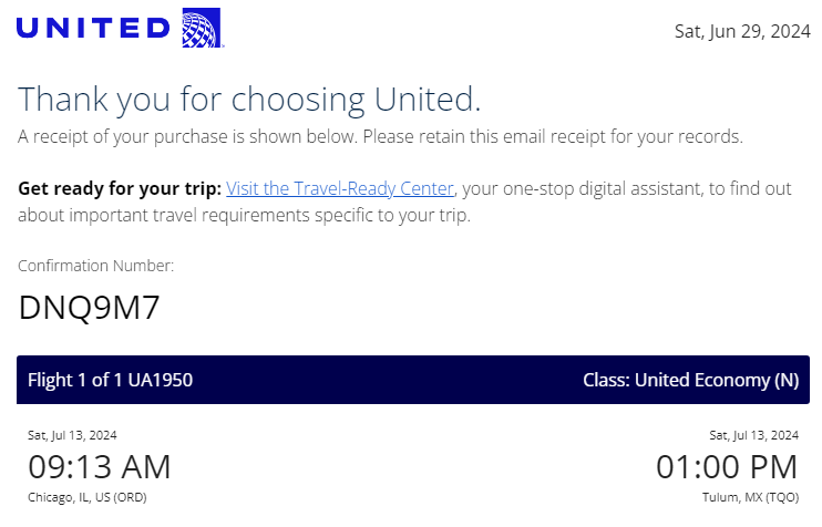 여행 1-2주 전이었기 때문에 항공권을 알아보는 것부터 일이었다. 멀지 않은 거리라 마일리지를 이용하는 것도 그렇게 가성비가 좋지 않았고, 저렴한 표를 구할 수 있을지 찾아보았다. 다행히 저렴한 표가 조금 보여서, 시카고에서 툴룸으로 향하는 유나이티드의 편도 표와 칸쿤에서 시카고로 돌아오는 편도 표를 총액 $250 정도로 구매할 수 있었다. 멕시코시티나 그 주변 지역이 조금 더 끌리기는 했으나, 여기는 $400 이상은 돈을 줘야 하더라. 뭐, 나중에 따지고 보니 물가 비싼 유카탄 대신 타 지역을 여행했으면 오히려 돈이 덜 들었을 지도 모르겠다.