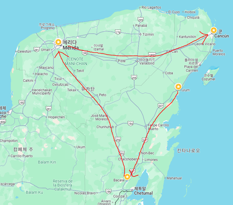 티켓을 구매한 후 어디를 갈지 고민해 보았다. 칸쿤 자체는 워낙 미국인들의 호텔 휴양을 위한 곳이다 보니 그렇게 끌리지는 않았고, 대신 그 외의 주변 지역 위주로 다녀보기로 했다.